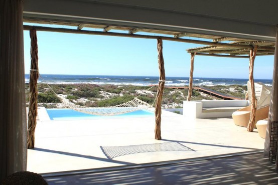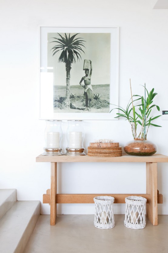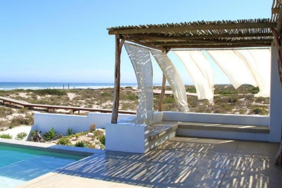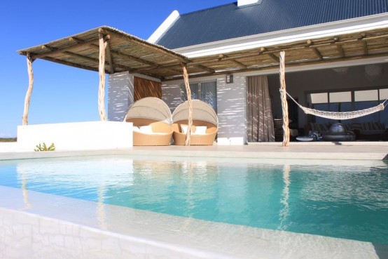 This West Coast fantastic holiday home is created by Pedro and Renée De Sambento and located in Cape Town. The house excites with simple casual comfort, the furniture and accessories are a harmonious mix of locally sourced and imported pieces. The colors chosen are neutral and this helps the wooden and wicker furniture pieces to integrate the space better. There are even dry tree trunks added to the living room, they keep the house in touch with nature. There’s a swimming pool and – for long summer days and relaxed entertaining – a huge deck. It’s an amazing house to forget about everything!